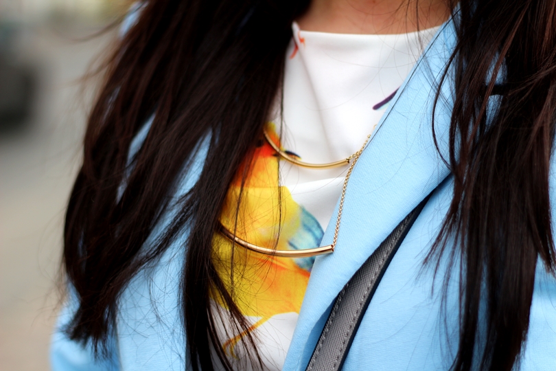 |Marynarka – allegro, sukienka – choies, buty – pantofelek, zegarek- lorus, torebka – reserved, naszyjnik – gugama |