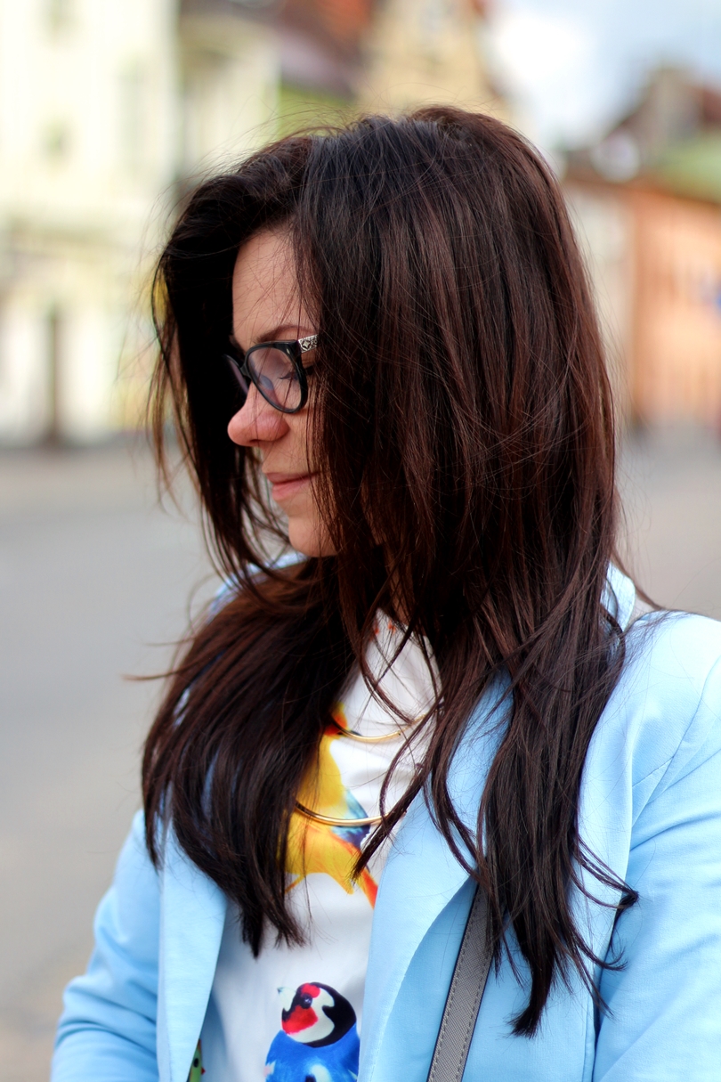 Przechadzając się w tym roku po sklepach widziałam bodajże w mohito ten sam motyw na kieckach i spódniczkach wiec pewnie ptaszki będą dość popularne tego lata. Swoje znalezisko wykopane z dna szafy zestawiłam z błękitną marynarką i beżowymi, klasycznymi szpilkami. Szara torebka to już klasyk wśród moich zestawów, rozglądałam się za nową jednak nic ciekawego nie wpadło mi w oko.