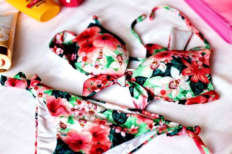 Względem zbliżającego się mojego urlopu i oczywiście wyjazdu na tegoroczne wakacje postanowiłam pokazać wam jak wygląda mój plażowy niezbędnik. Tym roku nabyłam dwa stroje kąpielowe, oba pochodzą z calzedonii. Kwiatowy jest z tegorocznej kolekcji i dostałam go od Mikołaja , natomiast różowy kupiłam w outlecie, skusił mnie swoimi brazylijskimi majteczkami. Na plaży nie może zabraknąć oczywiście odpowiednich kosmetyków. Soraya dla dzieci, na co dzień stawiam na krem z filtrem 30spf także Soraya ( taki krem nie jest widoczny na skórze w porównaniu do kremu 50spf ). Aby przyśpieszyć i utrwalić opaleniznę wybieram przyśpieszacz DAX Cosmetics. Gdy już nasze ciało nabierze koloru lubię opaleniznę podkreślać produktami rozświetlającymi. W tym roku trafiłam na całkowitą nowość krem CC z Bielendy, który idealnie wyrównuje kolory skóry i dodatkowo ją upiększa oraz rozświetla. Swoje ciało przyozdabiam w delikatne drobinki złota także olejkiem Pat&Rub, który przepięknie mieni się na słońcu a dodatkowo nawilżą skórę.