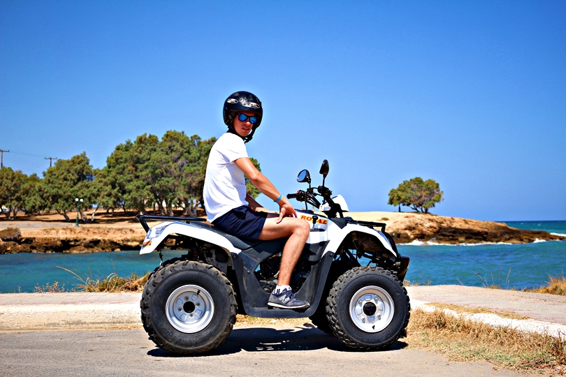 Aby na maksa wykorzystać czas spędzony w Grecji, jednego dnia udaliśmy się na pieszą wyprawę dookoła miejscowości, w której znajdował się nasz hotel. Wędrowaliśmy jakieś 4 godziny robiąc przy tym ponad 10 km. Okrążyliśmy Kato Gouves praktycznie z każdej strony. Przystanęliśmy dosłownie tylko na chwilę, siadając na murek pozwoliliśmy wsłuchać się w kojący szum morza. Drugiego dnia skierowaliśmy się ku wypożyczalni pojazdów i wypożyczyliśmy quada, bo przecież nim wygodnie jest zwiedzać i podziwiać uroki tej cudownej wyspy. Swoją wycieczkę rozpoczęliśmy od zwiedzania Hersonissos, dużej miejscowości oddalonej na wschód od Kato Gouves jakieś 8 minut drogi. Wyruszyliśmy na zachód w kierunku Kokkini Hani, gdzie podziwialiśmy zapierające dech w piersiach widoki. Lazurowe morze, morska bryza i te cudowne wzniesienia terenu, których pasmo rozciągało się nad Gouves. Tego dnia pokonaliśmy jakieś 60km, podziwiając przy tym przepiękne krajobrazy. Takich widoków zapewne nie udało by nam się spotkać gdy zamiast quada postawilibyśmy na samochód.