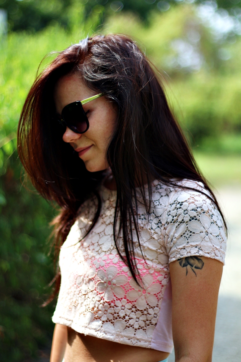 A przy okazji zrobiłam dla was zdjęcia. Taki niby zwyklak, jednak uwielbiam połączenie krótkich topów z szortami z wysokim stanem. Połączenie dwóch typowo pastelowych kolorów: baby blue + pudrowy róż idealnie pasuje w upalne, letnie dni. Dwa dni temu farbowałam też włosy, standardowo użyłam farby londa jasny brąz, który na moich włosach wychodzi jako typowo czekoladowy odcień, w którym czuje się doskonale. W ostatnim natłoku spraw i obowiązków, staram się każda wolną chwilę poświęcać na blog i zdjęcia. Nie zaprzestałam też z treningami, co wmawia mi wielu ciekawskich anonimów 🙂