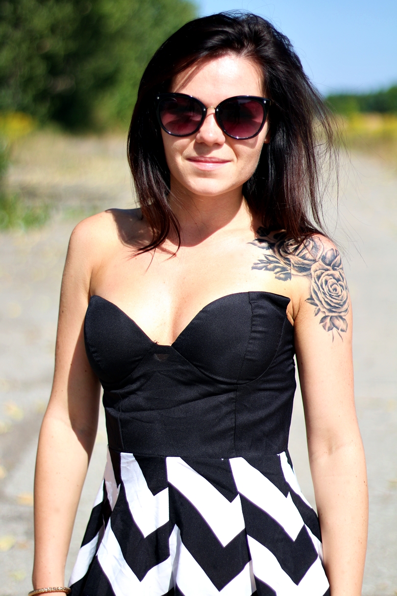 zdecydowanie w formie sukienki wyglądałoby to lepiej, ale połączenie i tak fajne! Jesteś drobną osóbką to najlepiej wyglądasz w takich krojach :). A do tego żadne ramiączko nie zasłania tatuażu! Pięknie 🙂