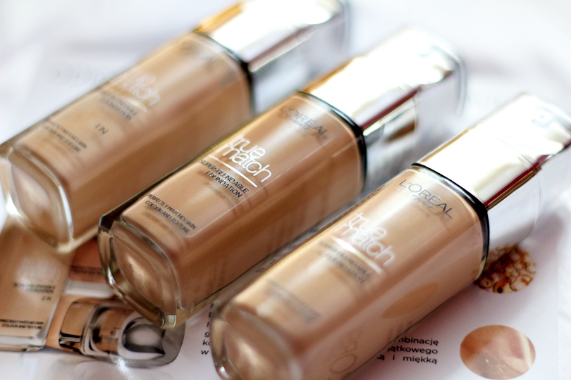 Podkład pozwala na uzyskanie jednolitej, aksamitnej konsystencji dla perfekcyjnego dopasowania ze strukturą skóry. W przepięknym, ekskluzywnym kartoniku otrzymałam trzy odcienie z bazy odcieni naturalnych. Łączna baza to aż 9 odcieni, 4 dla jasnej karnacji, trzy dla średniej i jeden dla ciemnej. Nowa formuła true match wzbogacona została o trzy nowe hybrydowe pigmenty. Dzięki czemu podkład osiąga jeszcze lepszą precyzję kolorystyczną. Rewolucyjne połączenie czterech olejków zapewnia doskonałe rozprowadzenie podkładu, łatwość użytkowania i wyjątkowo sensoryczne doświadczenie. Nowa kremowa formuła zawiera kombinację gliceryny, witaminy E i B5, co pozostawia skórę gładką i miękką w dotyku.Spośród trzech odcieni Ivory, Vanilla i Rose Beige wybrałam dla siebie Vanilla. Ivory był zbyt porcelanowy, natomiast Rose Beige to dość chłodna odsłona ciemniejszej karnacji i nadawał się bardziej dla oliwkowej cery. Podkład świetnie kryje i stapia się ze skóra. A wam jak podoba się nowa propozycja od Loreal ?