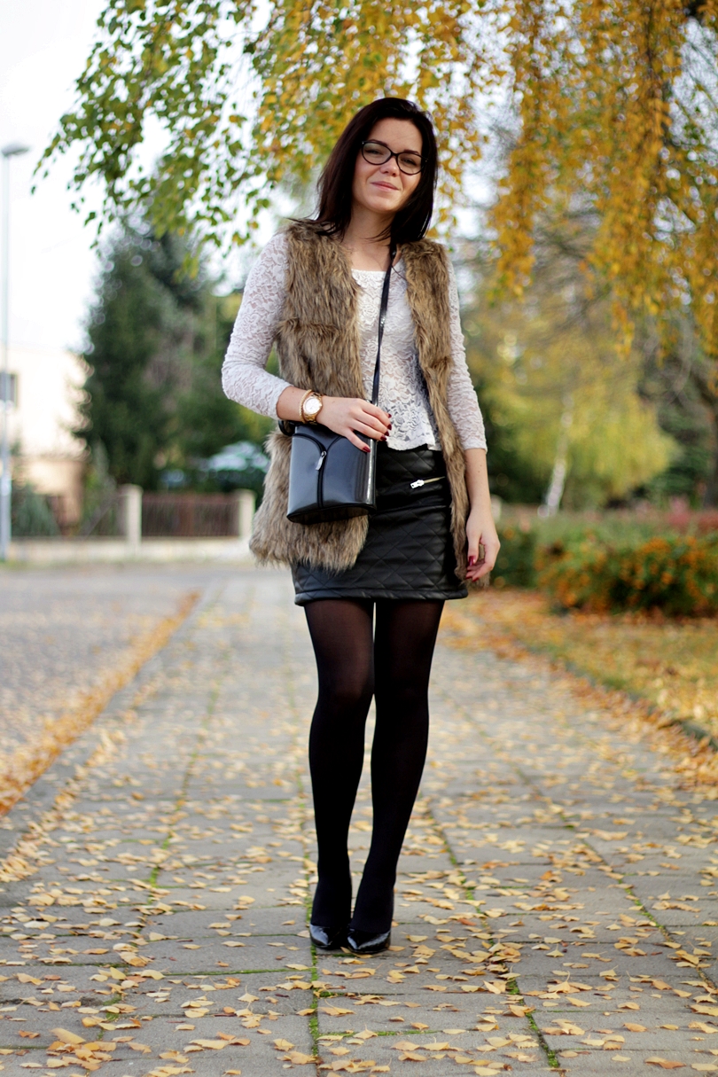 Ja | kamizelka – dressin, spódniczka – mosquito, buty- pantofelek24, torebka – supergalanteria, baskinka – hm, zegarek – lorus |