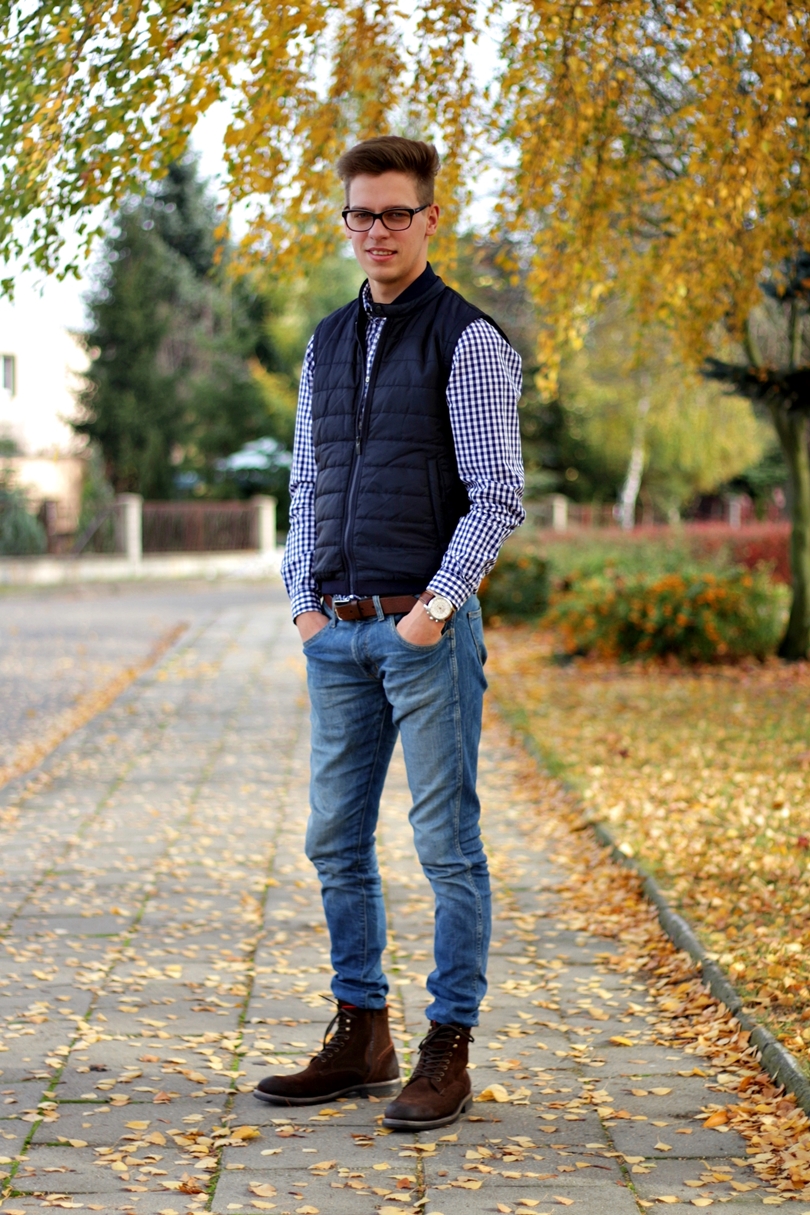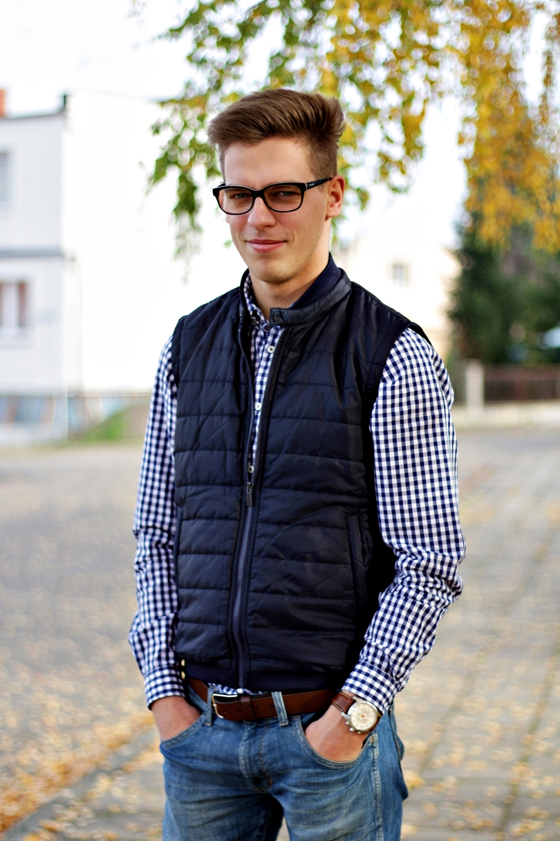 Z oczami kota ze shreka udało mi się namówić go do możliwości pstryknięcia i opublikowania tych zdjęć. Najpierw może opowiem o moim zestawie. skórzana pikowana spódniczka połączona z biała baskinką i futerkową kamizelką z sklepu online. Czarne lakierowane szpilki w wężową fakturą i torebka, która swoim małym rozmiarem idealnie nadaje się na bardziej formalne wyjścia. Kiedyś preferowałam kuferki damskie, natomiast teraz gdy dużo poruszam się autem wygodnie mi jest przerzucić na ramię małe torebki. Torebki damskie na ramię są tymi, których w garderobie mam chyba najwięcej. Królują oczywiście w kolorze klasycznej czerni. Tak jak pisałam, dzisiaj gościnnie na zdjęciach pojawił się Mikołaj. on woli być raczej po drugiej stronie obiektuwy, jednak udało mi się go namówić na tej kilka zdjęć. Zawsze moją uwagę bardziej przyciągali faceci, którzy ubierali się klasycznie. U nas w garderobie ciężko o jaskrawe tshirty z wielkimi napisami. Mikołaj kolekcjonuje koszule i tshirty basic. Oczywiście nie oznacza to, że nie wskakuje w dresy bo i w takich spodniach czuje się dobrze.