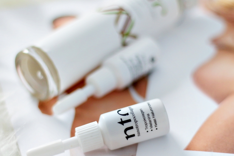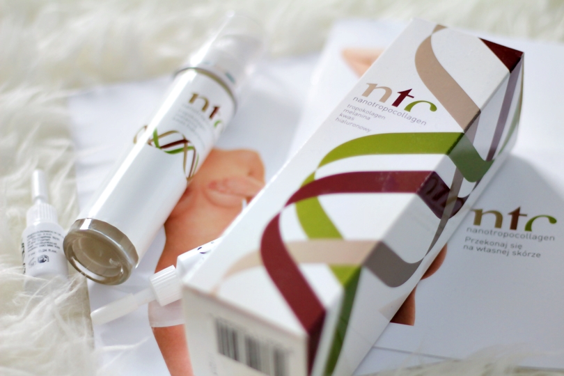 Aby uzupełnić braki tej mikroskopijnej cząstki białka postanowiłam sięgnąć po naturalny kosmetyk w postaci żelu- Kolagen NTC. Kolagen NTC całkowicie różni się od drogeryjnych kosmetyków, jego naturalny skład nie zawiera barwników, konserwantów, parabenów i wykazuje bardzo szybką przenikliwość naskórka. Niewielka buteleczka produktu skłoniła mnie do przetestowania go całkowicie na skórze twarzy, chociażby dlatego, że w krótkim czasie wykazal zdumiewającego efekty na mojej twarzy. Kolagen NTC wymaga odpowiedniego sposobu nakładania, żel nakładamy na oczyszczoną i zwilżoną skórę po czym wykonujemy delikatny pięciominutowy masaż opuszkami palców, uważając by skóra była cały czas zwilżona wodą. Taki masaż staram się wykonywać codziennie przed snem. Wtedy znajduję najwięcej czasu na pielęgnację. Po takiej kuracji skóra jest niezwykle nawilżona, napięta i wygładzona. Dodatkowo delikatne zmarszczki stały się mniej widoczne a twarz wygląda naprawdę zdrowo i wypoczęcie.