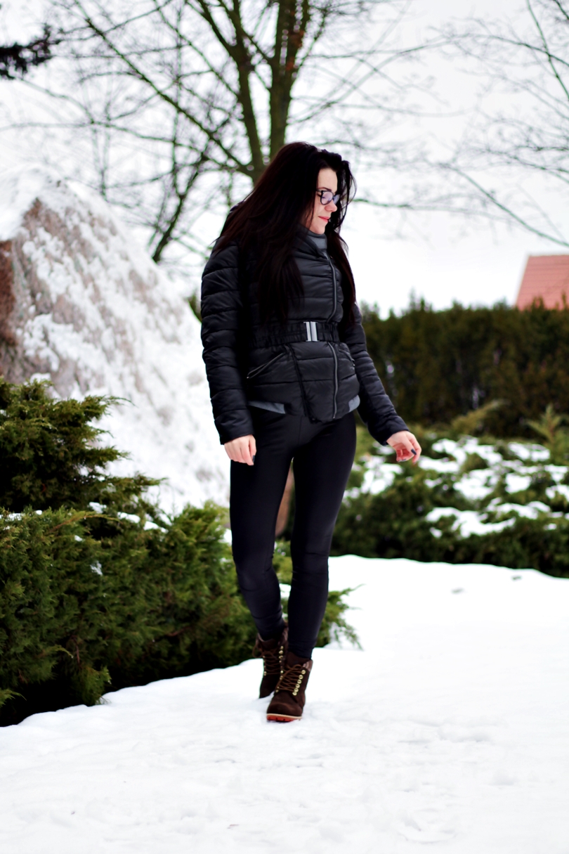 Tym razem nie przełamałam kolorystki i całość wygląda jak black total look. Poza butami, które w tym wypadku są brązowe, wybierając postawiłam własnie na typowo klasyczne, brązowe traperki. Gdyż właśnie tak kojarzyły mi się zawsze buty nadające się typowo na śnieg. Jeżeli chodzi o moją garderobę na okres zimowy, to wydaje mi się, że więcej rzeczy już nie będę kupować. Teraz gdy już wyskoczę na jakiś mały shopping, będę starała się zwrócić uwagę głownie na ciuchy nadające się typowo na wiosnę. Mam już dosyć grubych swetrów i z chęcią wskoczyła bym w jakaś mgiełkę czy zwiewną spódniczkę.