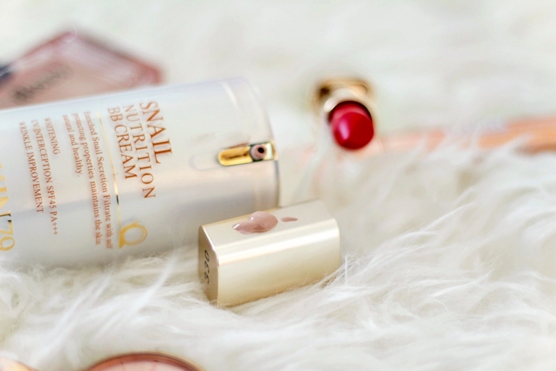 Jakiś rok temu w moje posiadanie wpadł mój pierwszy krem BB, krem z garniera. Do tej pory używam go niemal co dziennie. Skuszona pozytywnymi opiniami na temat kremów BB Skin79 postanowiłam wybrać taki, który będzie odpowiadał mojej skórze. W moim co dziennym makijażu cenię sobie promienny wygląd, rozświetlenie i blask. Abby skóra wyglądała na wypoczęta używam rozświetlającej emulsji Saisona, o której pisałam kilka dni temu. Jednak moja cera posiada wszelkiego rodzaju, mniejsze i większe przebarwieni dlatego postawiłam na krem BB Skin 79 Snail Nutrition. Biały słoiczek kryje w sobie „Krem BB o działaniu silnie regenerującym, dzięki zawartości wydzieliny ze ślimaka, peptydów oraz ekstraktu z kory brzozy. Śluz ślimaka stanowi 45% zawartości kremu, który działa mocno odżywczo na komórki skóry. Skóra jest wygładzona i ujędrniona. Wyrównuje koloryt skóry oraz kryje niedoskonałości skórne. Ponadto krem rozjaśnia i napina zmęczoną skórę, oraz posiada właściwości przeciwzmarszczkowe. Zawarty w kremie śluz ślimaka nadaje skórze gładkość i blask na długi czas. Otula ją nawilżającą warstwą ochronną. ” tyle obiecuje nam producent, a jak jest naprawdę ? Otóż krem Skin79 ma ziemistą barwę i lekką, łatwo do rozprowadzenia konsystencję. Mała ilość wystarczy na pokrycie całej twarzy. Jednak uważam, że nadaje się on dla bardzo jasnej cery, u mnie spisuje się idealnie jednak kobiety o ciemniejszej cerze mogą mieć z nim problem. Pięknie rozświetla i wyrównuje koloryt skóry. W moim przypadku spisuje się idealnie.