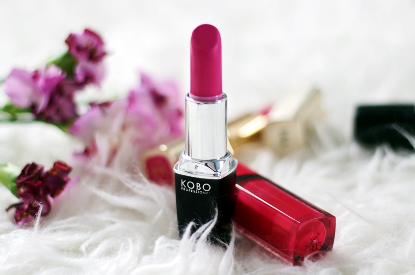 I chociaż moja kolekcja pomadek nie ogranicza się tylko do tych kolorów, to ja przeważnie właśnie po nie sięgam najczęściej. Aby jednak nie popaść w monotonię wiosną i latem na moich ustach królować będzie intensywny róż. Mam 3 pomadki o tym soczystym odcieniu fuksji, dwie kremowe od kobo i loreal oraz matową z bourjois. Moda i moje wielkie bum na matowe pomadki szybko minęło, dlatego teraz matową pomadkę przykrywam błyszczykiem aby na ustach pojawiła się odrobina blasku. Z kobo mam pomadkę nr 108 z serii fashion colour. Pomadka o mega trwałości i intensywnym kolorze. Kolor bardziej wpada w fuksję niż w róż jak w przypadku pomadki loreal nr 144. Ta jest utrzymana w cieplejszej kolorystyce. Z bourjois wolę pomadki z serii aqua laque. Matowych rogue edition velvet używam sporadycznie i tak jak wspomniałam wyżej nakładam na nie błyszczyk. Odcień obecny na zdjęciu to ole flamingo nr 05.
