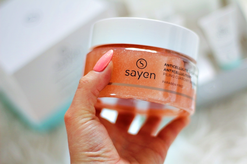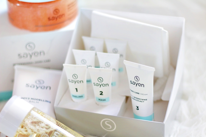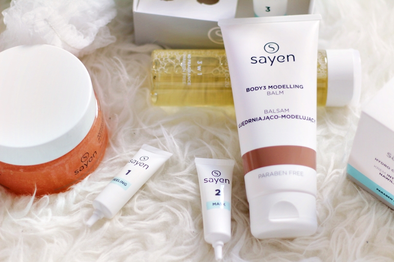Przygotowując się do lata, a szczególnie do zbliżającego się urlopu, który zapewne spędzimy daleko stąd, gdzieś gdzie temperatura nie spada poniżej 25 stopni swoją szczególną uwagą chciałam skupić na pielęgnacji i nawilżenie skóry twarzy. Silne słońce oraz morska woda dodatkowo wysuszą, dlatego już teraz postanowiłam zadbać o nawilżenie mojej cery z kosmetykami Sayen. Mile zaskoczona linią nawilżającą, a w szczególności kuracją trzy etapową. Uwielbiam stworzyć sobie chociaż raz w tygodniu takie domowe spa. Krem nawilżający Sayen, na początku sprawia wrażenie ciężkiego i mozolnego, jednak po nałożeniu tworzy na skórze niewidzialną nawilżająca mgiełkę, którą otula i nawadnia przez cały dzień, zawartość pentanolu dodatkowo łagodzi podrażnienia, których przy przesuszonej skórze nie brakuje. Oczywiście ja maniaczka peelingów nie mogłam przejść obojętnie obok serii dedykowanej do pielęgnacji ciała. Skusiłam się na peeling i balsam do ciała. Uwielbiam nawilżenie, a moja skóra potrzebuje go na każdym kroku. I niestety nie pomaga ciągłe picie wody, ani zdrowa dieta, dlatego na ratunek przychodzą mi właśnie takie kosmetyki jak Sayen.