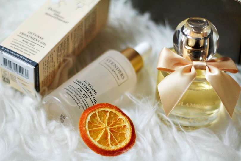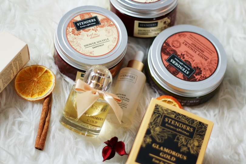 Już po pierwszym przekroczeniu progu tej cudownie pachnącej krainy wiedziałlam, że na jednym wejściu się nie skończy. Od tego czasu stendersa odwiedzam za każdym razem gdy jestem blisko, a dodatkowo ich kosmetyki służą mi od tego czasu w codziennej pielęgnacji mojego ciała. O standersie pisałam już podczas relacjonowania otwarcia ich sklepu tutaj. Teraz przedstawię wam małą część ich świetnych produktów. Kultowymi produktami stenders poza oczywiście kulami do kąpieli są suflety, które idealnie zastępują żel pod prysznic. Suflety są wyjątkowo lekkie, mają konsystencje kremu, świetnie się pienią, a dodatkowo zawierają drobinki peelingujące. Stenders to przede wszystkim również bogata gama zapachów i perfum. Moje westchnienia sięgają ku zapachowi o nazwie Glamoorous gold – ten subtelny, luksusowy zapach rozwija się z wykwintną mieszanką orientalnych nut połączonych z owocami, ciepłym i aksamitnym aromatem drewna oraz piżma, dodając bogactwo, głębię i blask. Nie mogłam również ominąć linii Royal Jelly i ich cudownego olejku do twarzy. Te mieszanka 3 naturalnych olejków sprawie że moja twarz jest wyjątkowo promienna i pełna nawilżenia. Olejek jest wyjątkowo 'suchy’ i nie pozostawia tłustego filmu na twarzy. Olejek polecam szczególnie teraz, zimą gdy nasza buźka jest wyjątkowo narażona na przesuszenia. Cały zabieg pielęgnacji kończę jogurtem do ciała, który dzięki swojej ekstra konsystencji wchłania się w mgnieniu okna, świetnie pachnie w moim przypadku grejpfrutem – idealny zapach na zimowe wieczory 🙂 Cudownie i z pełną starannością zapakowana paczka przynosi tylko na myśl zbliżające się święta. Taki prezent możecie również sprawić swoim bliskim, ich zestawy znajdziecie tutaj.